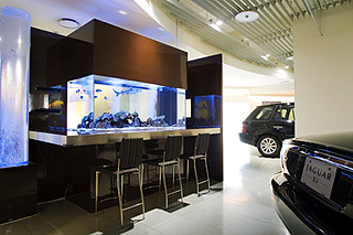 青山にあるジャガージャパン様のショウルームに弊社の大型アクアリウムを設置して