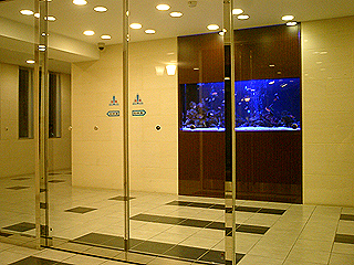 高級マンションエントランスに深さのある海水魚水槽を壁面に設置しました。 ピタッとはまりました。